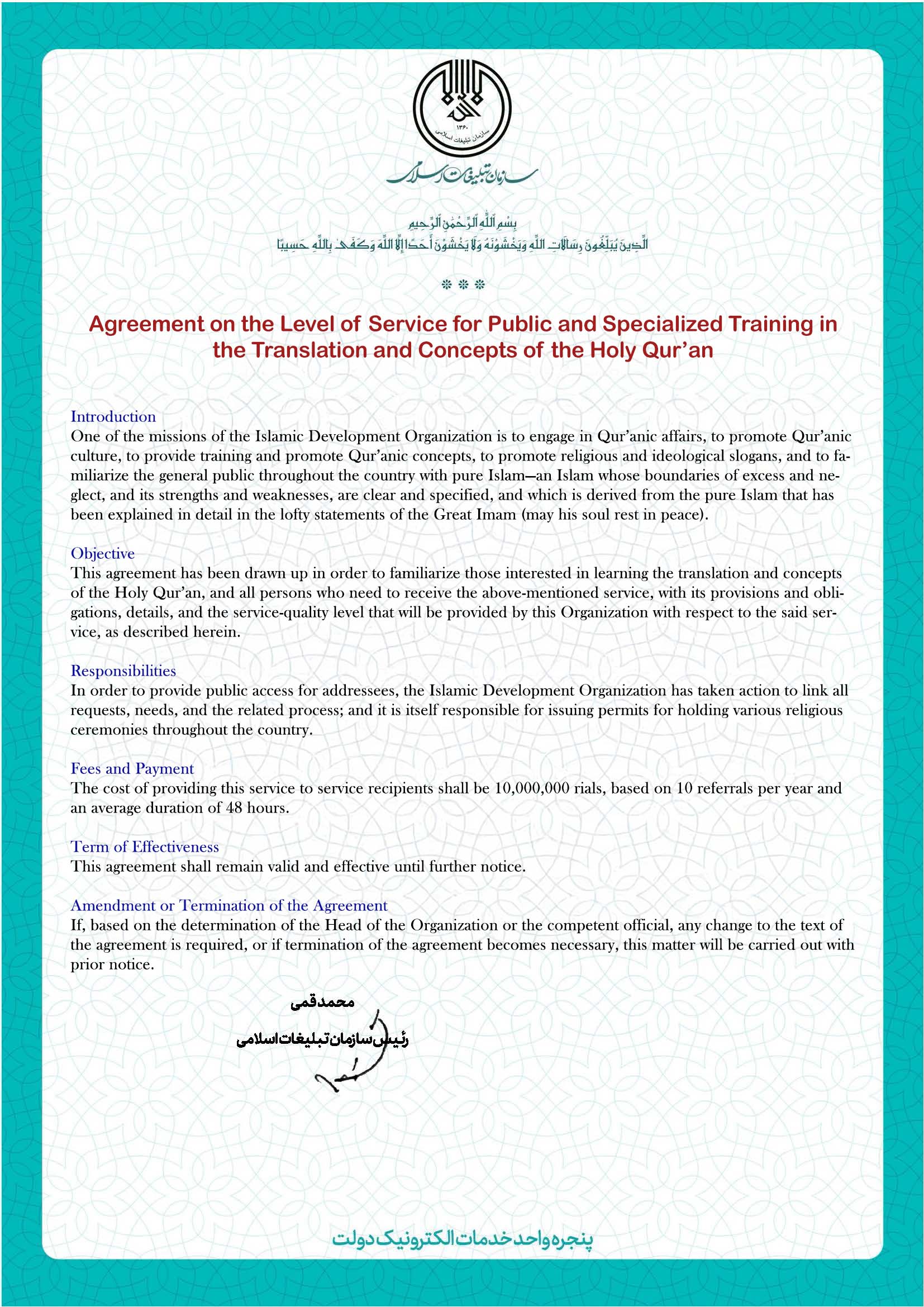 Required documents to receive the service: In addition to personal identification details, other documents may also be required depending on the nature of the service.