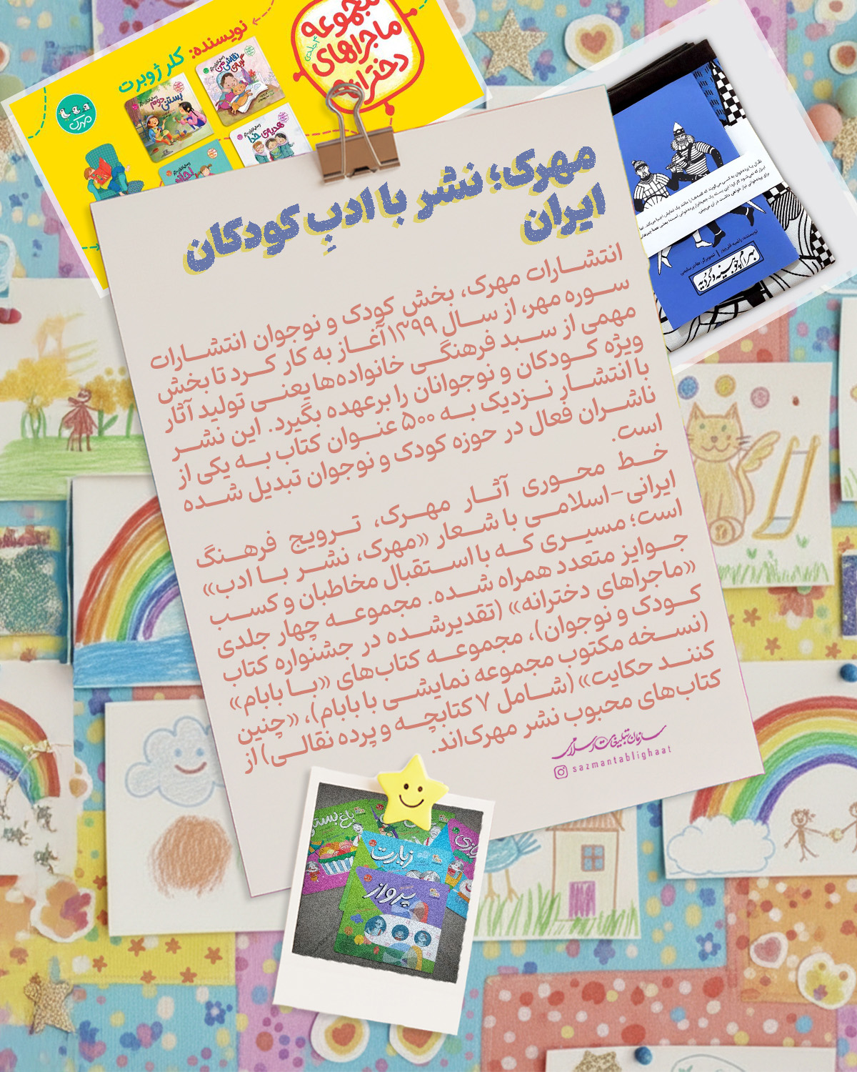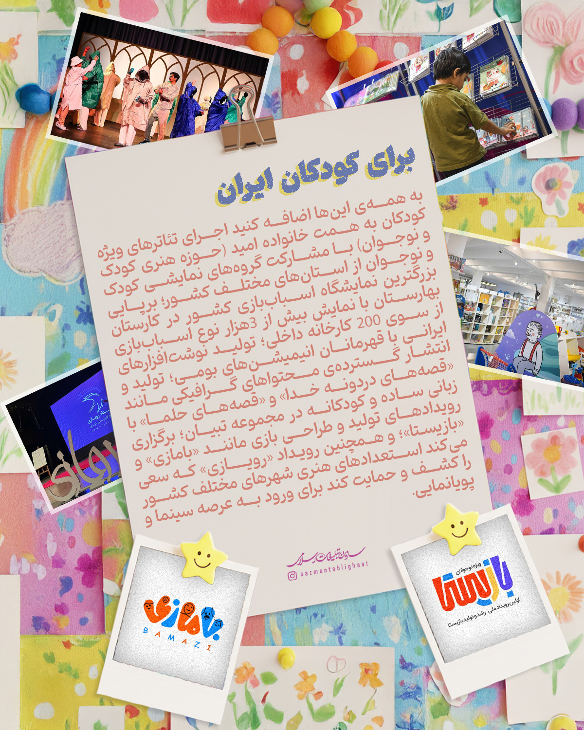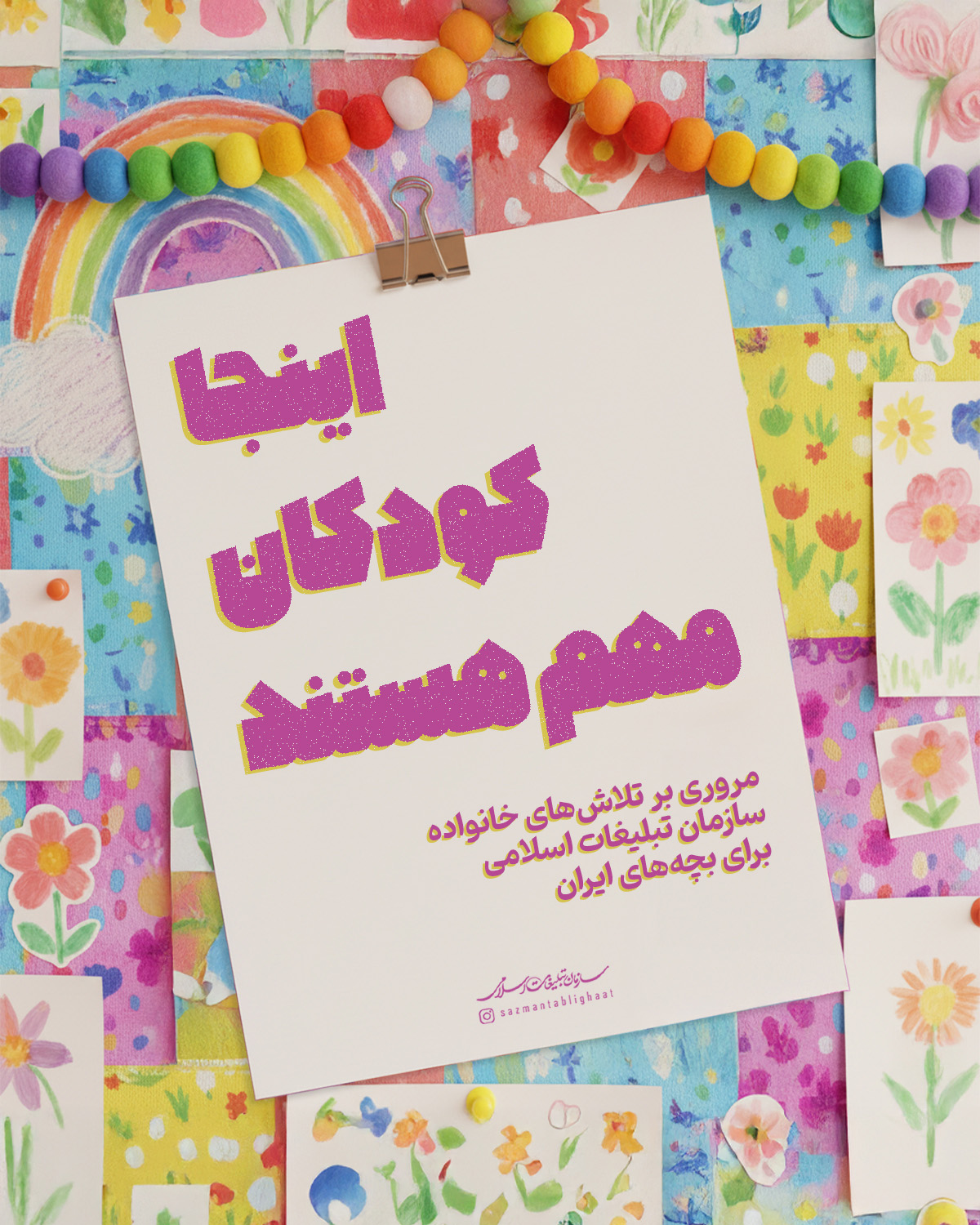کودکان در سبد مخاطبان خانواده سازمان تبلیغات اسلامی «واقعاً» مهم تلقی می‌شوند؛ ما سعی کرده‌ایم نگاه گلخانه‌ای به کودکان نداشته‌باشیم و در همه اجزا،‌ توان‌مان را به کار بگیریم برای بچه‌های ایران‌زمین. از پویانمایی‌هایی با قهرمانان بومی،‌ تا کتاب، پویش، بازی، برنامه‌ و البته تربیت مربیان و مبلغان جوان و متخصص در حوزه کودک؛ این مجله گوشه‌ای از تلاش‌های این خانواده فرهنگی-تبلیغی برای آینده‌سازان ایران را تصویر می‌کند.