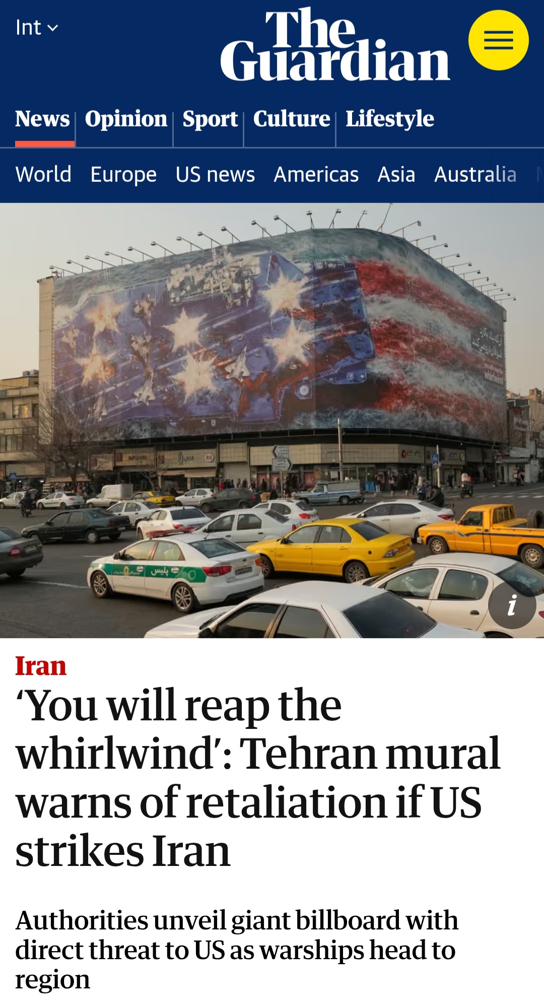 دیوارنگاره‌ای که در روزهای گذشته در میدان انقلاب حمله ایران به ناو آمریکایی را به تصویر کشیده، واکنش‌های زیادی را در رسانه‌های آمریکایی، اروپایی و عبری‌زبان به دنبال داشت. واکنش‌هایی که بیشتر آنها به معنای هشدار جدی ایران به هر اشتباهی در منطقه تعبیر شده است.