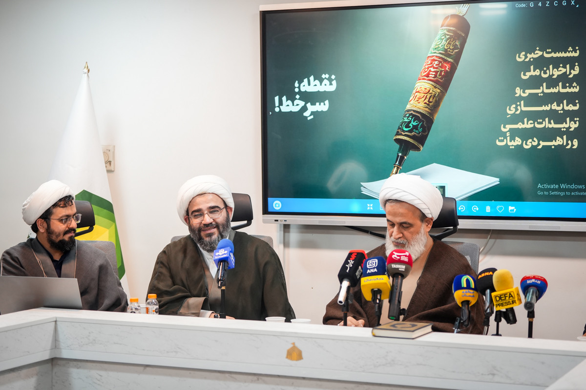 نشست خبری فراخوان ملی شناسایی و نمایه سازی تولیدات علمی و راهبردی هیأت با عنوان «نقطه؛ سرِ خط!» با حضور حجت‌الاسلام باباخانی رئیس سازمان هیأت و تشکل‌های دینی، حجت‌الاسلام پناهیان تولیت مدرسه علمیه دارالحکمه تهران، دکتر مهدی امین فروغی نویسنده و محقق در عرصه هنر آیینی و حجت‌الاسلام محمد مجید دائی مدیر اندیشکده هیأت، امروز ۷دی ماه در سالن جلسات سازمان هیأت و تشکل های دینی برگزار شد.