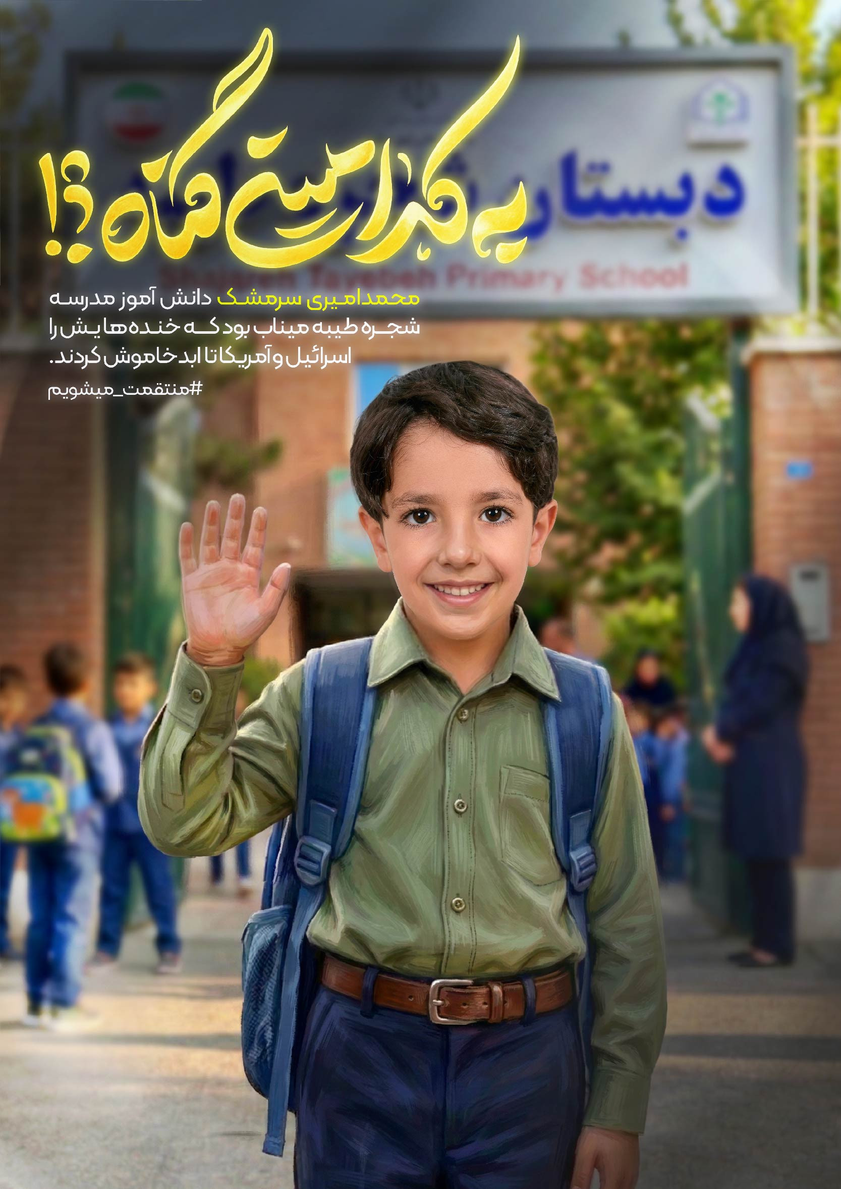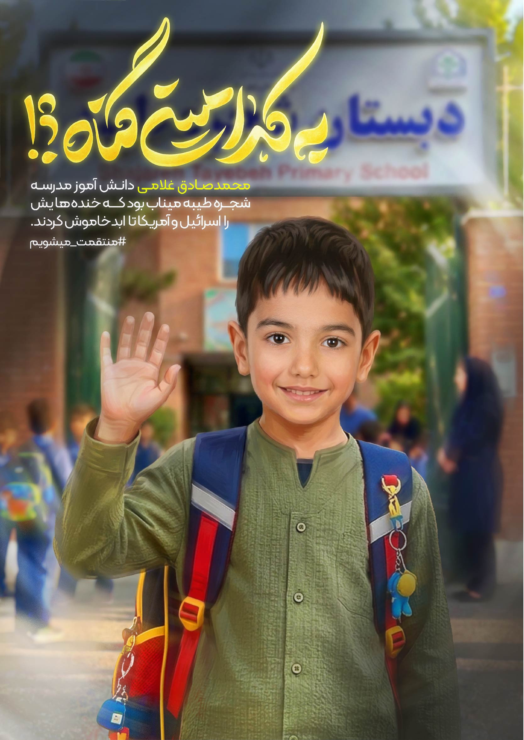 اینها قابهایی است از دانش آموزان شهید دبستان شجره طیبه میناب. دانش آموزان شهیدی که تنها چند ساعت پس از آغاز جنگ تحمیلی دوم آمریکایی و صهیونی رمضان ۱۴۰۴ به دست کودک کشان امروز جهان پر پر شدند. این دبستان در همان ساعات ابتدایی جنگ با دو بمب هدف حمله قرار گرفت. بمب اول منجر به شهادت گروهی از دانش آموزان شد و بمب دوم دانش آموزان و معلم این مدرسه را که در نمازخانه مدرسه پناه گرفته بودند به شهادت رساند. به یاد ۱۶۵ دانش آموز شهید این دبستان.