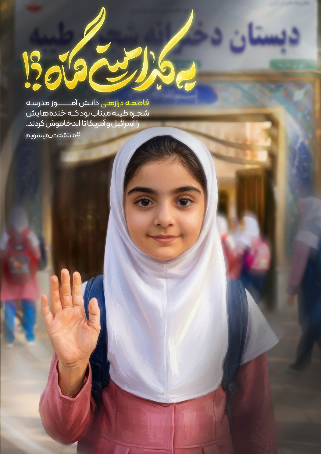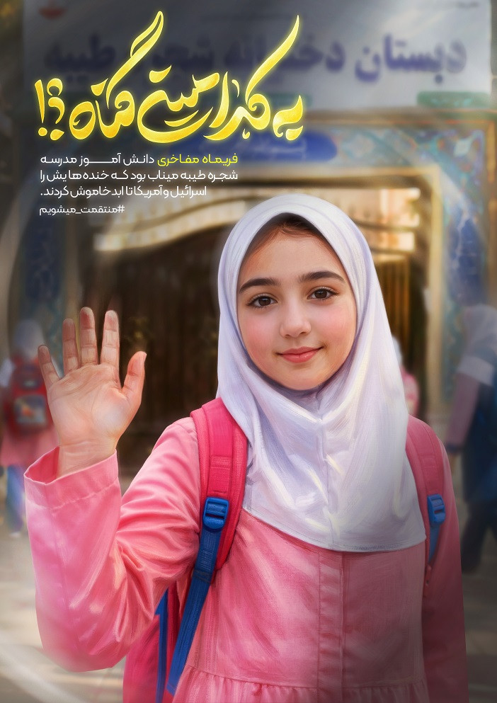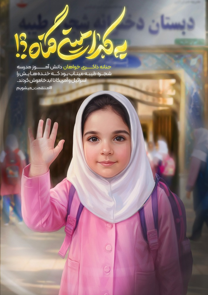 این‌ها قاب‌هایی است از دانش آموزان شهید دبستان شجره طیبه میناب. دانش آموزان شهیدی که تنها چند ساعت پس از آغاز جنگ تحمیلی دوم آمریکایی و صهیونی رمضان ۱۴۰۴ به دست کودک کشان امروز جهان پر پر شدند. این دبستان در همان ساعات ابتدایی جنگ با دو بمب هدف حمله قرار گرفت. بمب اول منجر به شهادت گروهی از دانش آموزان شد و بمب دوم دانش آموزان و معلم این مدرسه را که در نمازخانه مدرسه پناه گرفته بودند به شهادت رساند. به یاد ۱۶۵ دانش آموز شهید این دبستان. مرکز رسانه خانواده امید پیش از این و همزمان با جنگ تحمیلی دوازده روزه نخستین مجموعه طرح‌های گرافیکی به کدامین گناه را به یاد کودکان شهید حمله رژیم صهیونیستی به اماکن مسکونی منتشر کرده بود و این مجموعه به شهدای عزیز میناب تقدیم شده است.