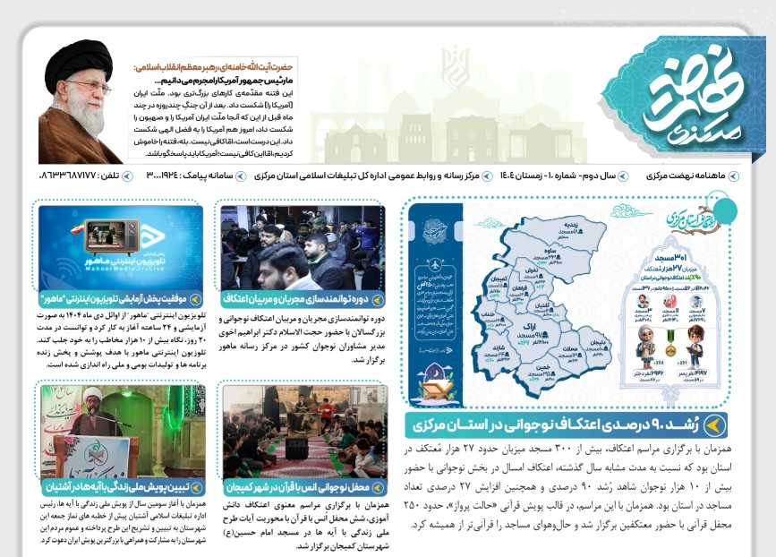 بیست و یکمین ماهنامه نهضت مرکزی اداره کل تبلیغات اسلامی استان مرکزی منتشر شد.