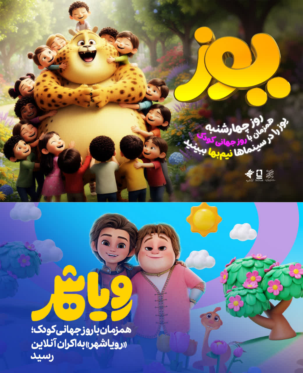 به گزارش روابط عمومی سازمان تبلیغات اسلامی ، به مناسبت روز جهانی کودک، دو انیمیشن محبوب «یوز» و «رویاشهر» به کودکان هدیه شدهاند؛ «یوز» هماکنون در سینماها نیمبها اکران میشود و «رویاشهر» از امروز به صورت اکران آنلاین در فیلیمو در دسترس کودکان قرار گرفته است.